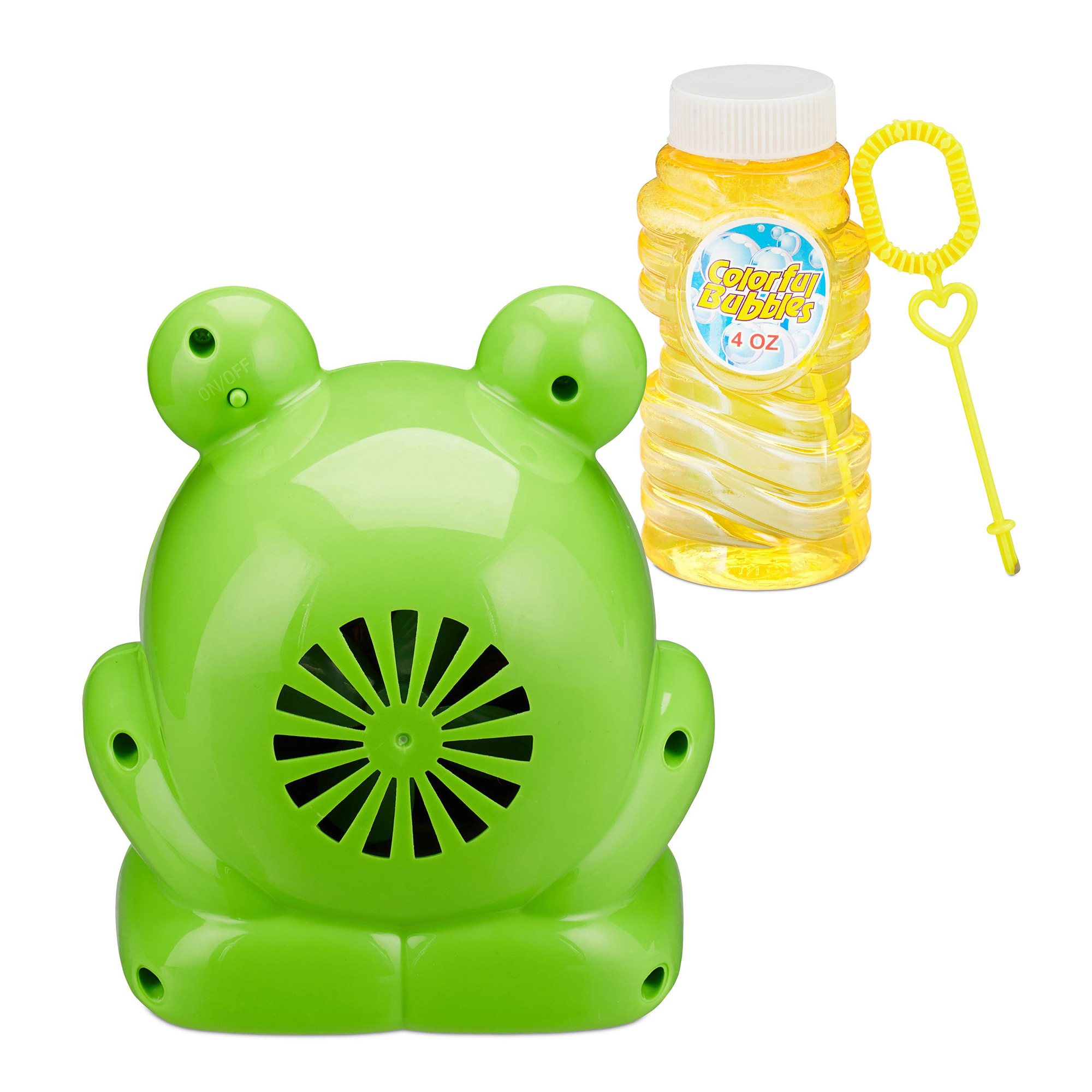 - Seifenblasen Set enthält Frosch Bubble Maschine und 2x Seifenblasenflüssigkeit zum Befüllen (je 120 ml)