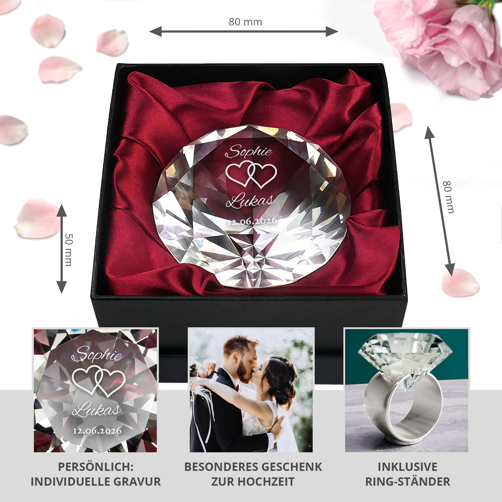 - Personalisierter Diamantkristall zur Hochzeit mit Namen und Datum