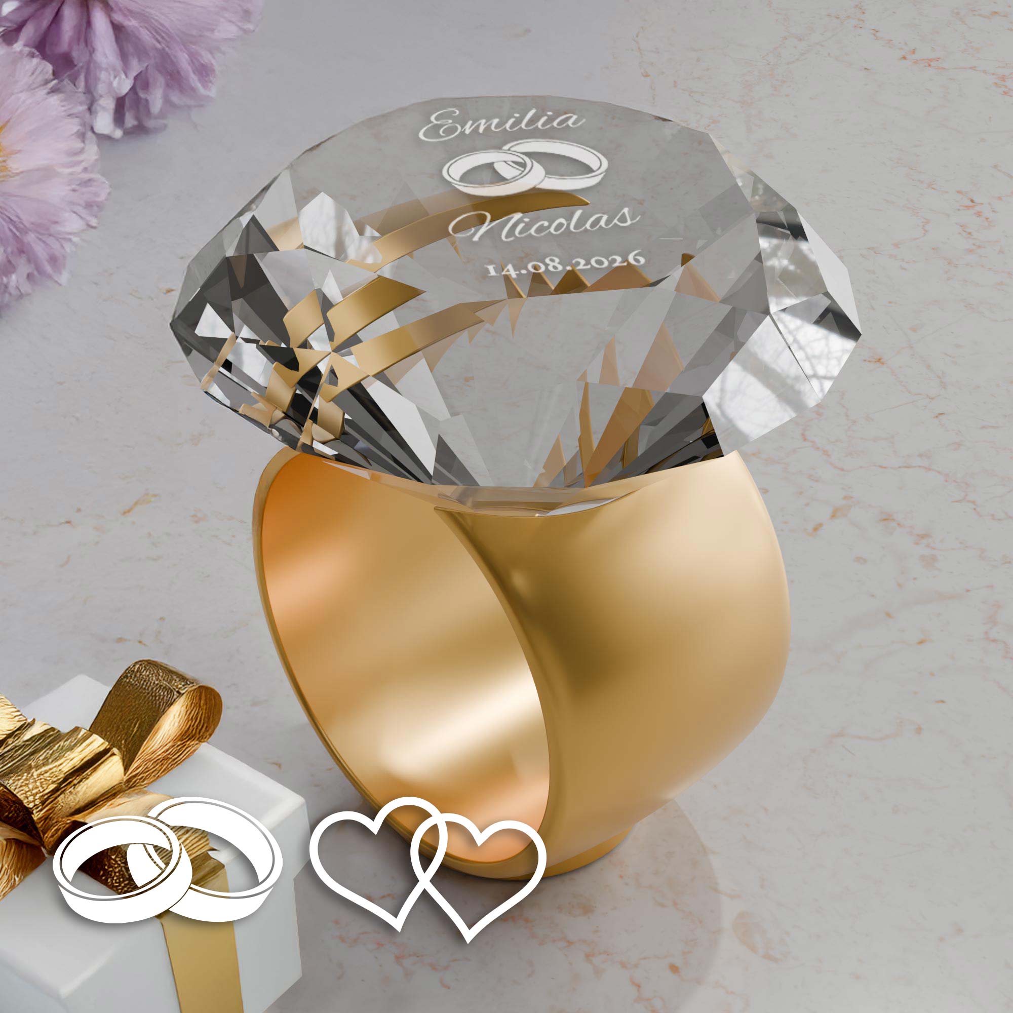 Diamant Kristall mit Gravur zur Hochzeit und Ring Displayständer