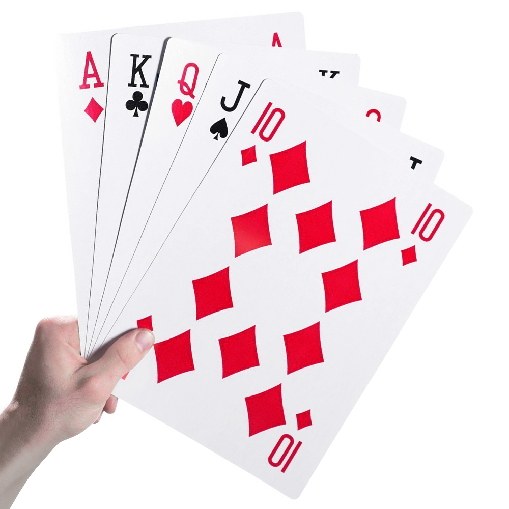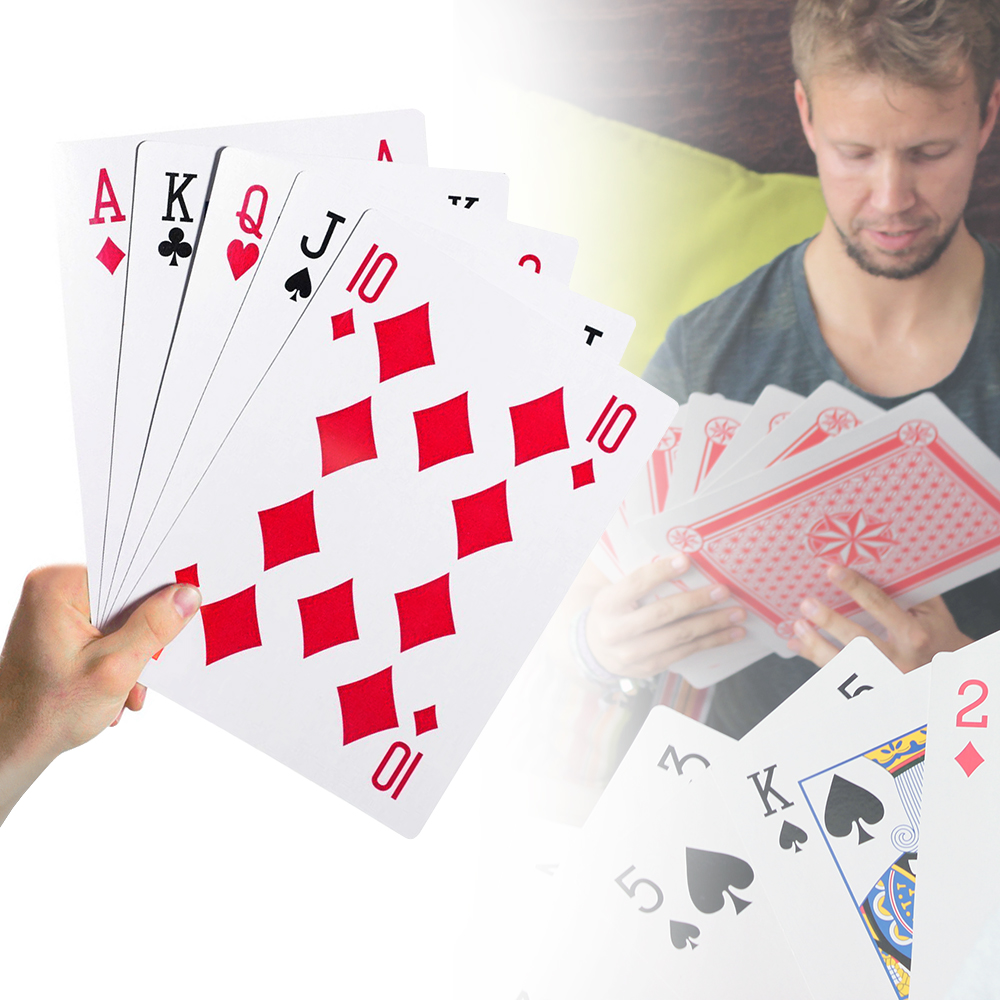 Wachsam sein! Die Riesen Spielkarten bringen Mitspieler in Versuchung in Dein Blatt zu schauen.