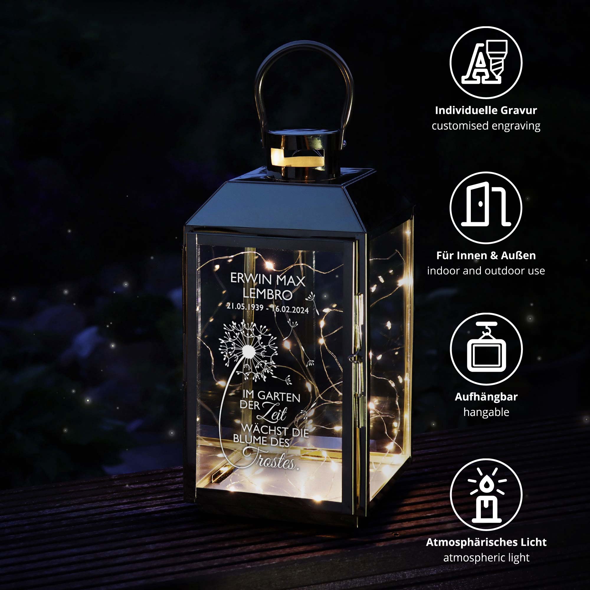 - Elegante goldfarbene Laterne mit Trauerblumen-Gravur