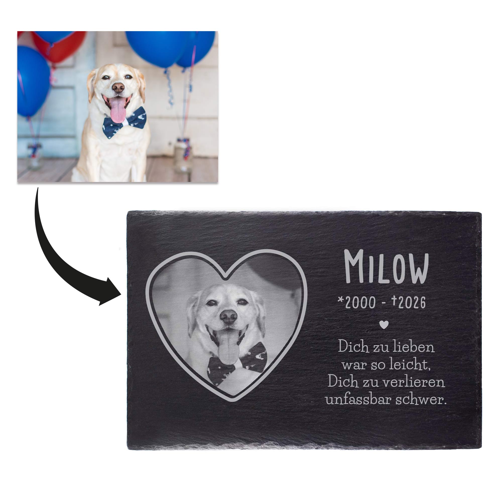 Grabplatte zur Trauer Haustier - Schiefer Gedenktafel mit Foto