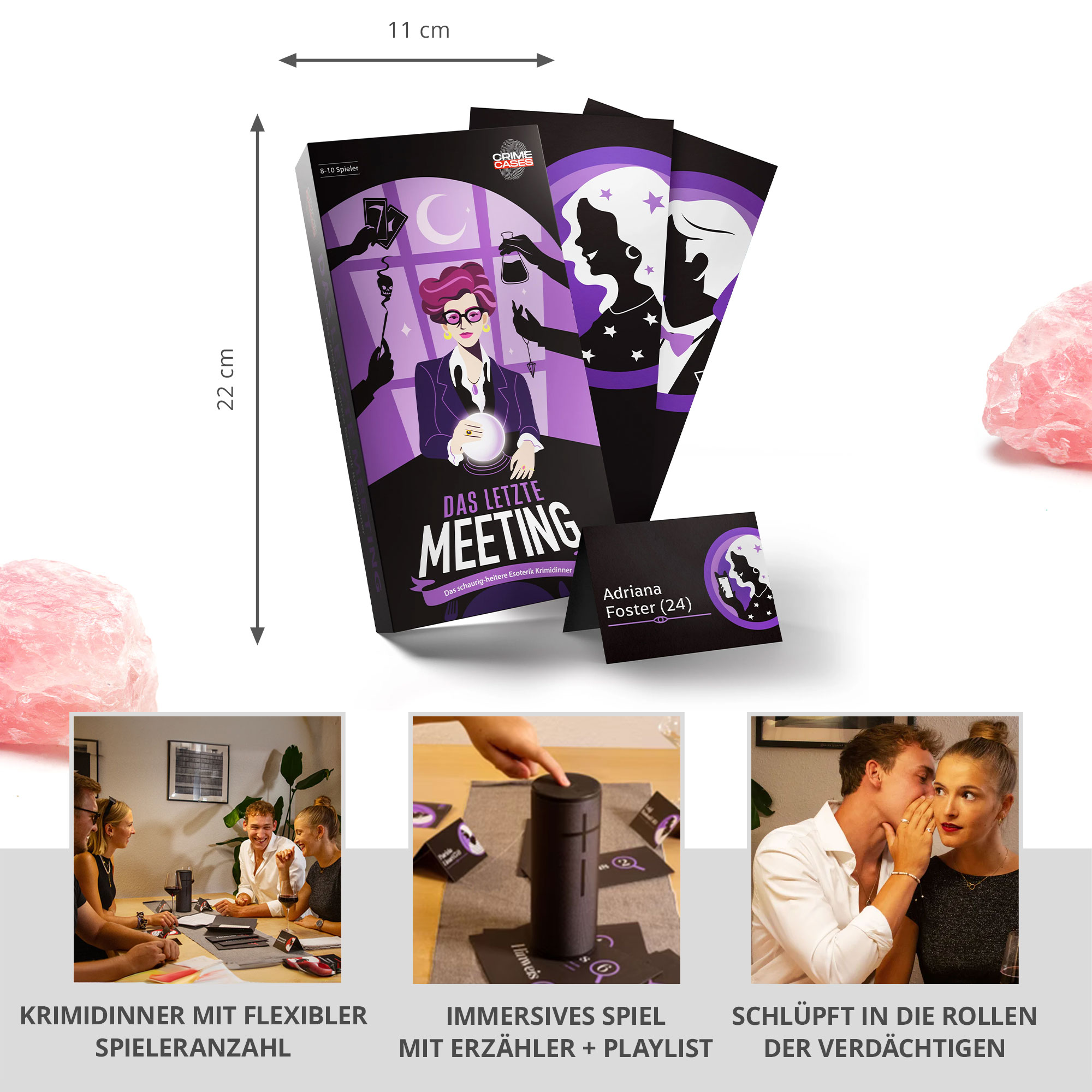 Namasté – oder doch lieber Tatort Büro? Bei Das letzte Meeting verwandelt sich eine scheinbar harmlose Firmenfeier der Esoterik-Marke Kissed Self in ein mörderisches Spektakel. Zwischen Tarotkarten, Räucherstäbchen und Coaching-Mantras wird plötzlich die Chefin tot aufgefunden. Wer wollte sie zum Schweigen bringen – und warum?