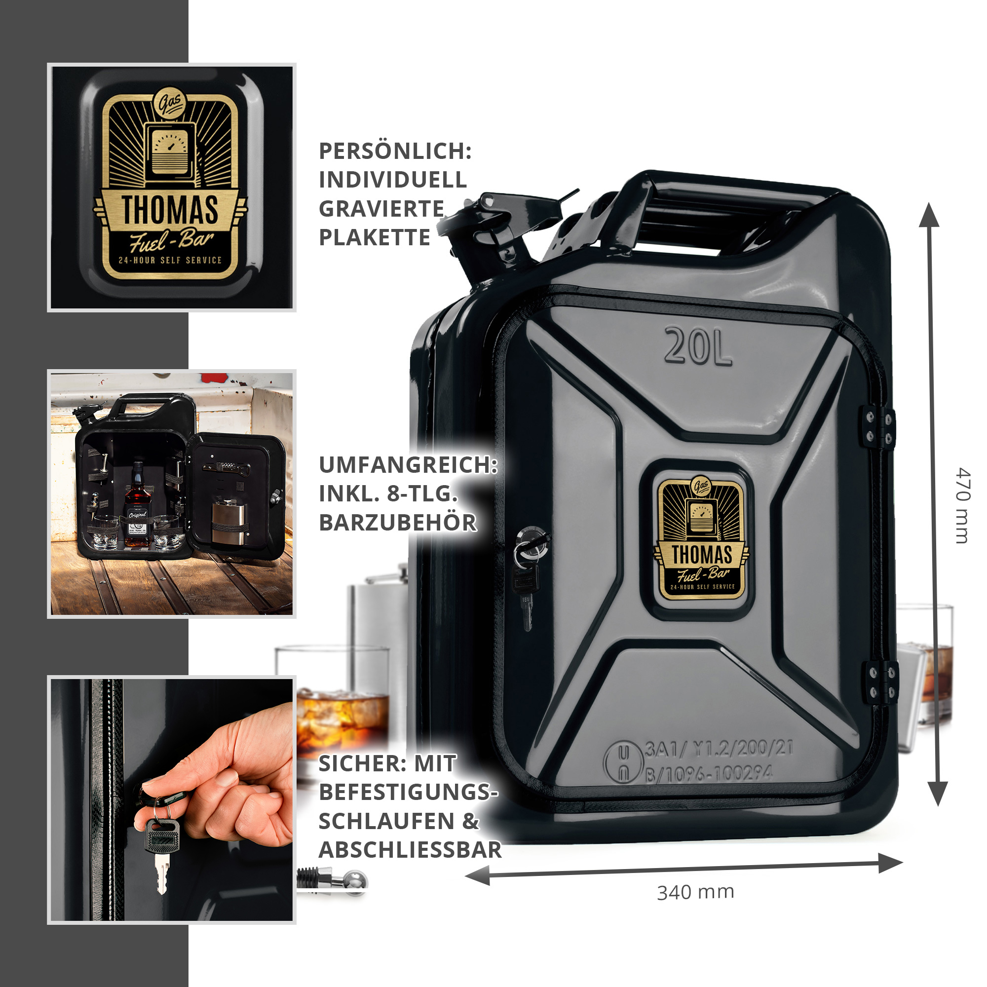 • Personalisierte Kanisterbar in Schwarz
