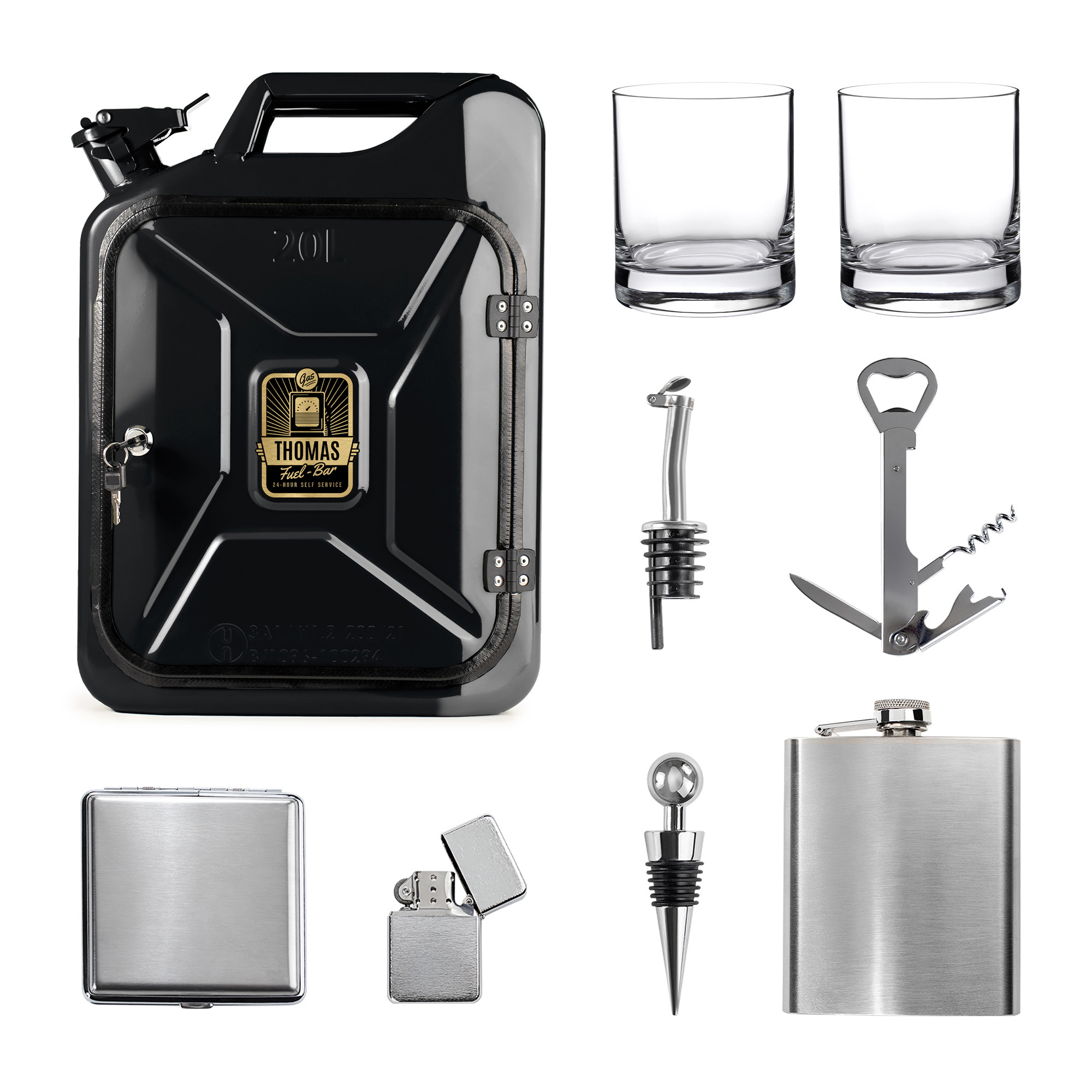 Personalisierte Kanisterbar mit 8-teiligem Zubehör - Schwarz