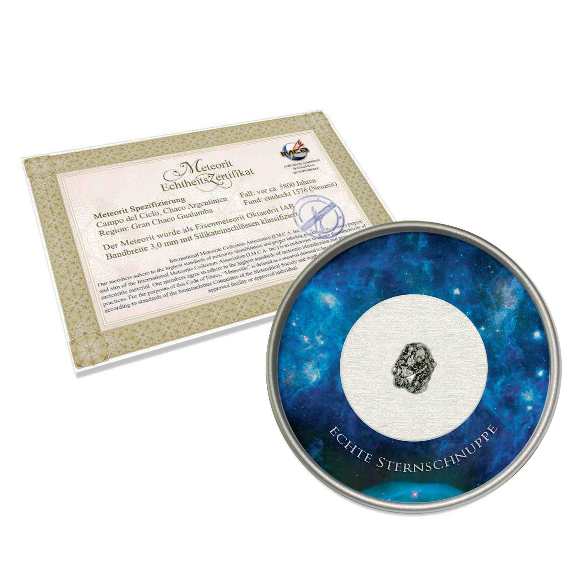 • Inklusive Infos zur Herkunft des Meteoriten & Echtheitszertifikat im Beilagenheft