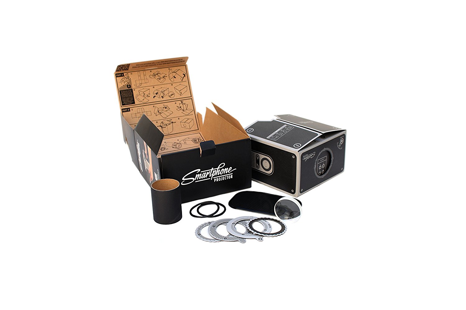 Bastelspaß ist inklusive, denn den Smartphone Beamer baust du dir mit wenigen Handgriffen einfach selbst zusammen. Dafür folgst du der Anleitung im Inneren der Box oder dem Anleitungsvideo. Der Mini Projektor schafft eine 8-fache Vergrößerung deines Bildschirm und ist sowohl für Androidgeräte als auch für iPhones geeignet. Also dann, Film ab!