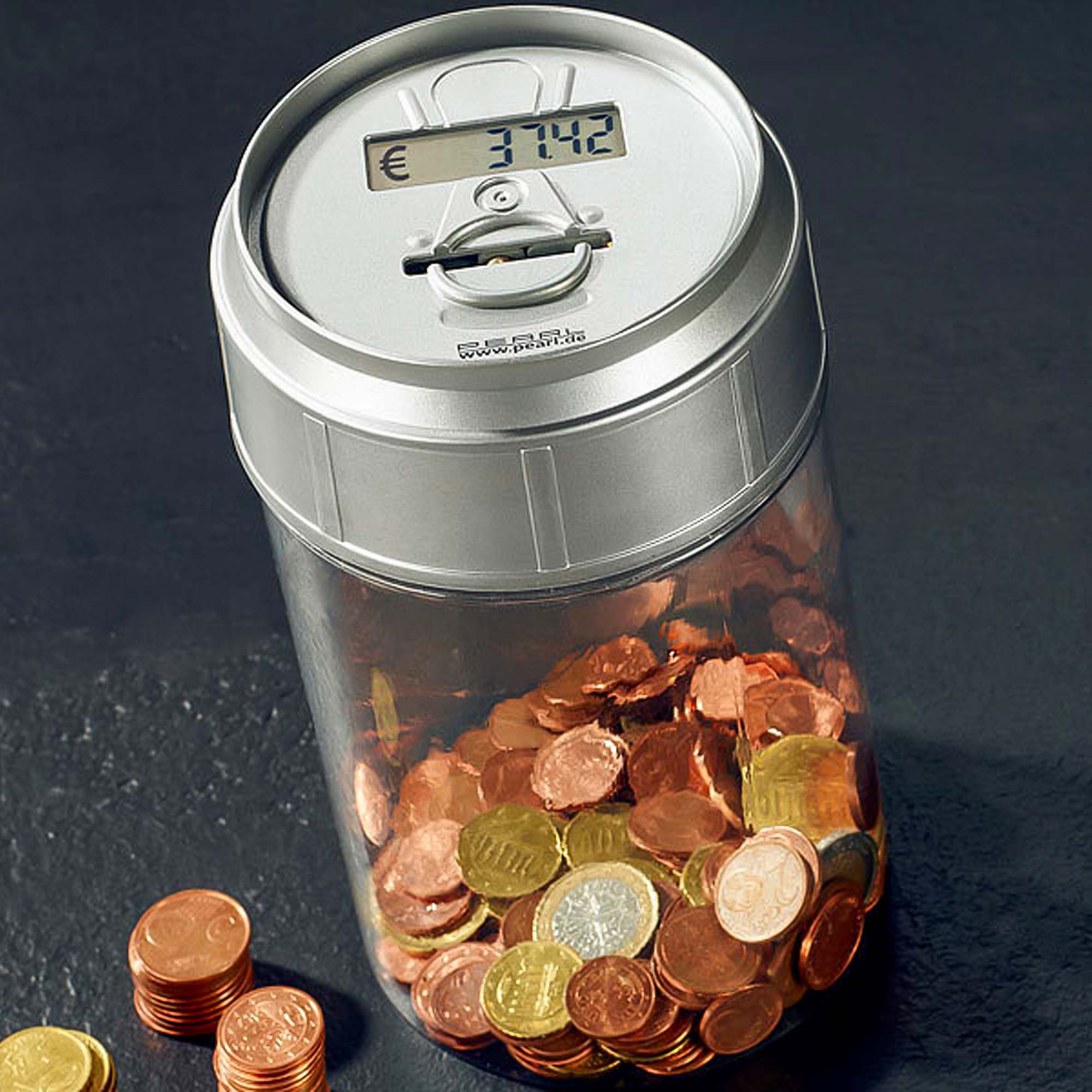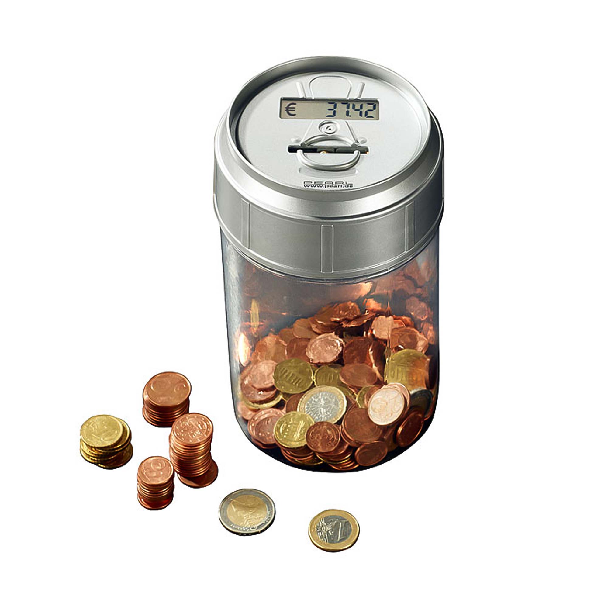 Bestimmt hast Du auch schon einmal in Deinem Leben auf ein bestimmtes Ziel hin gespart. Dazu eignen sich leere Riesenflaschen mit fünf Liter Inhalt, die man in der Wohnung auf den Boden stellt. Ohne einen Münzzähler ist das Auswerten Deines Gesparten eine mühevolle Kleinarbeit. Oft hast Du dann beim Anblick der halb vollen Flasche mit den vielen Münzen es aufgegeben den gesparten Betrag nachzuzählen. Das ist jetzt vorbei, denn die mitzählende Spardose nimmt Dir künftig die Arbeit des Geld-Zählens ab.