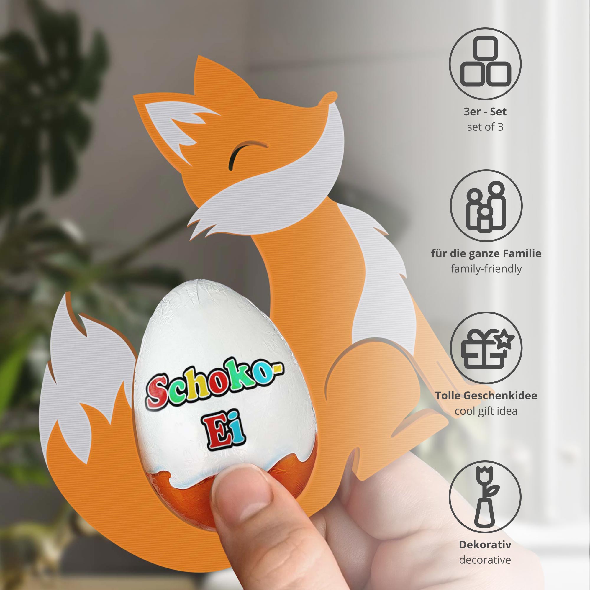 - 3er Set Ü-Ei Halter im Waldtier-Design