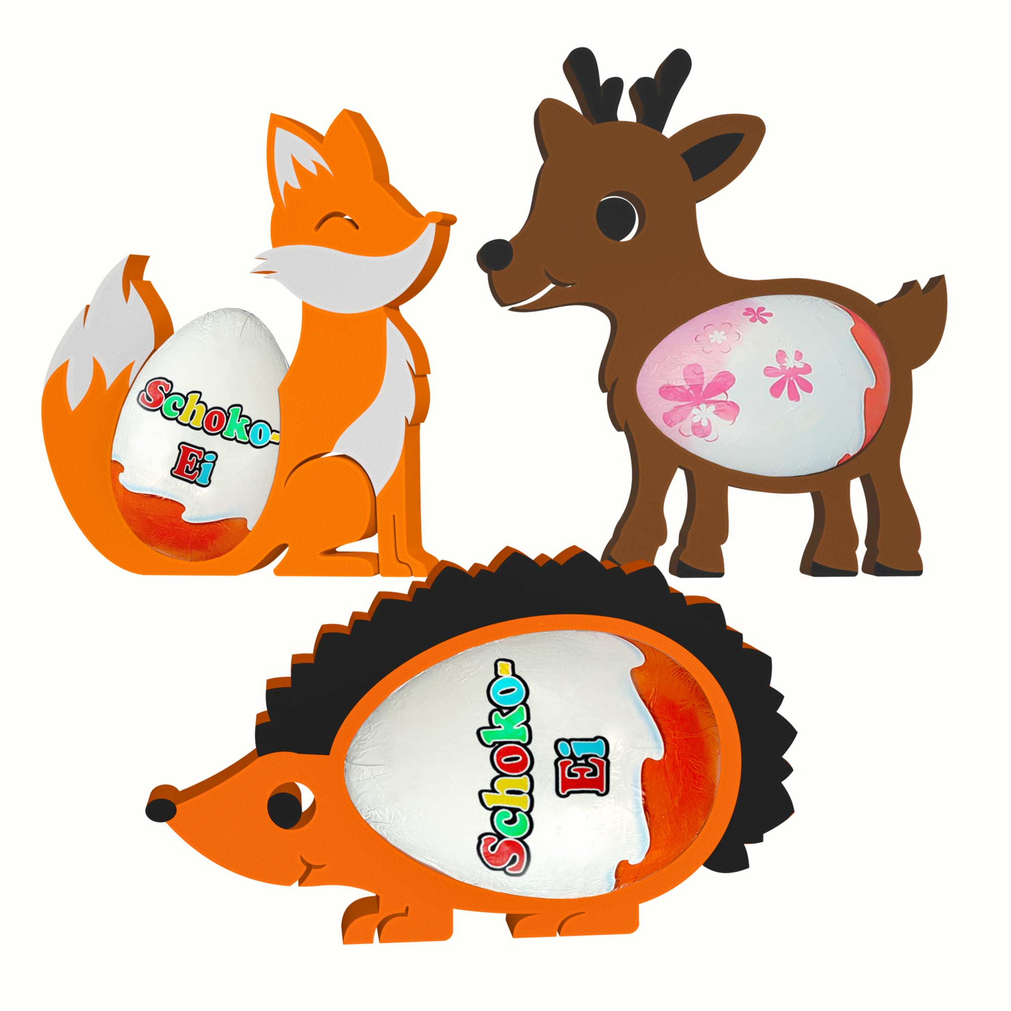 Die Tierhalter bestehen aus stabilem, farbigem Kunststoff und lassen sich kinderleicht mit handelsüblichen Überraschungseiern bestücken. Ob als kleines Mitbringsel für Kinder, kreative Verpackungsidee oder einfach als charmante Aufmerksamkeit – mit diesen Waldfreunden verschenkst Du nicht nur Schokolade, sondern auch ein Lächeln.