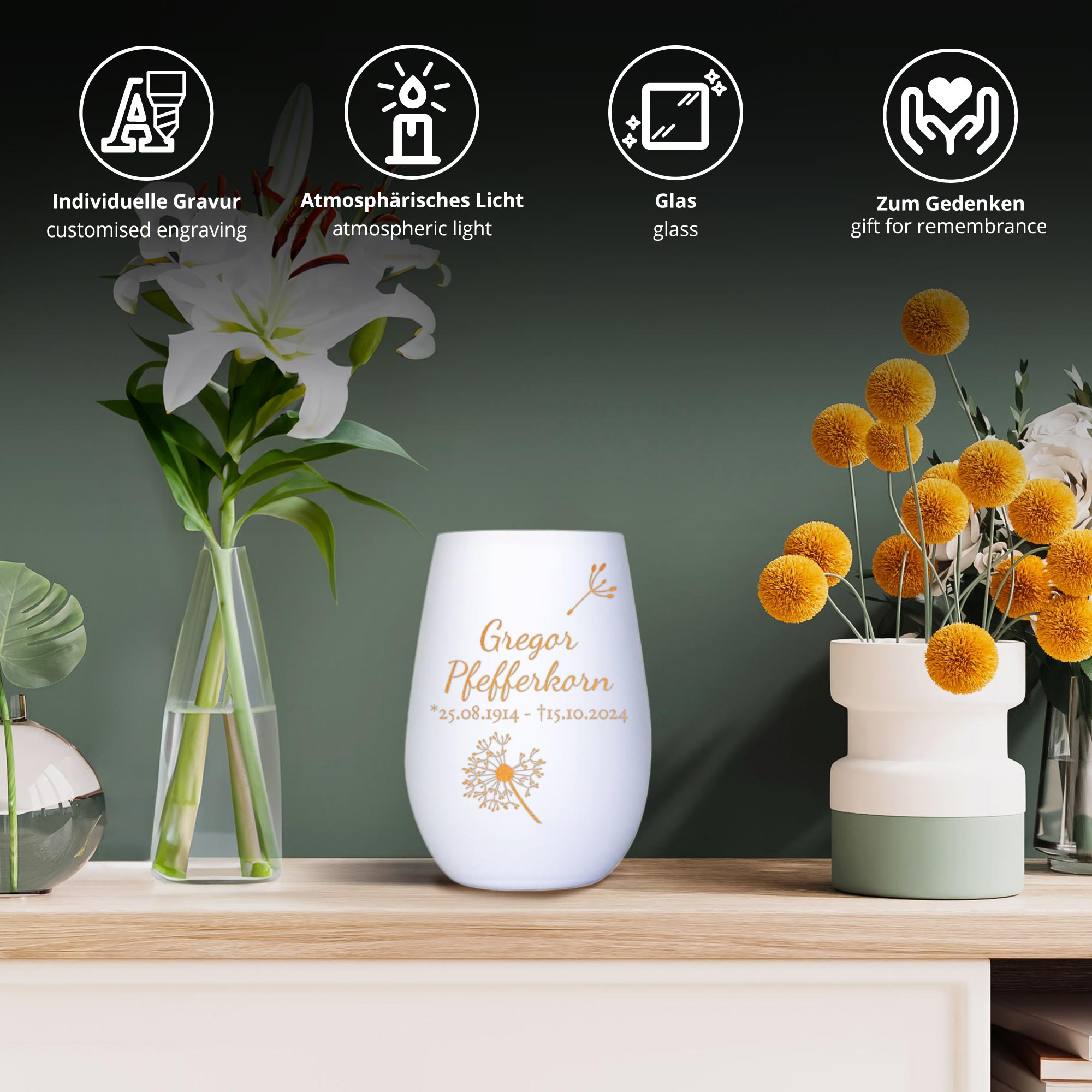 - Würdevolles Erinnerungslicht und liebevolles Trostgeschenk