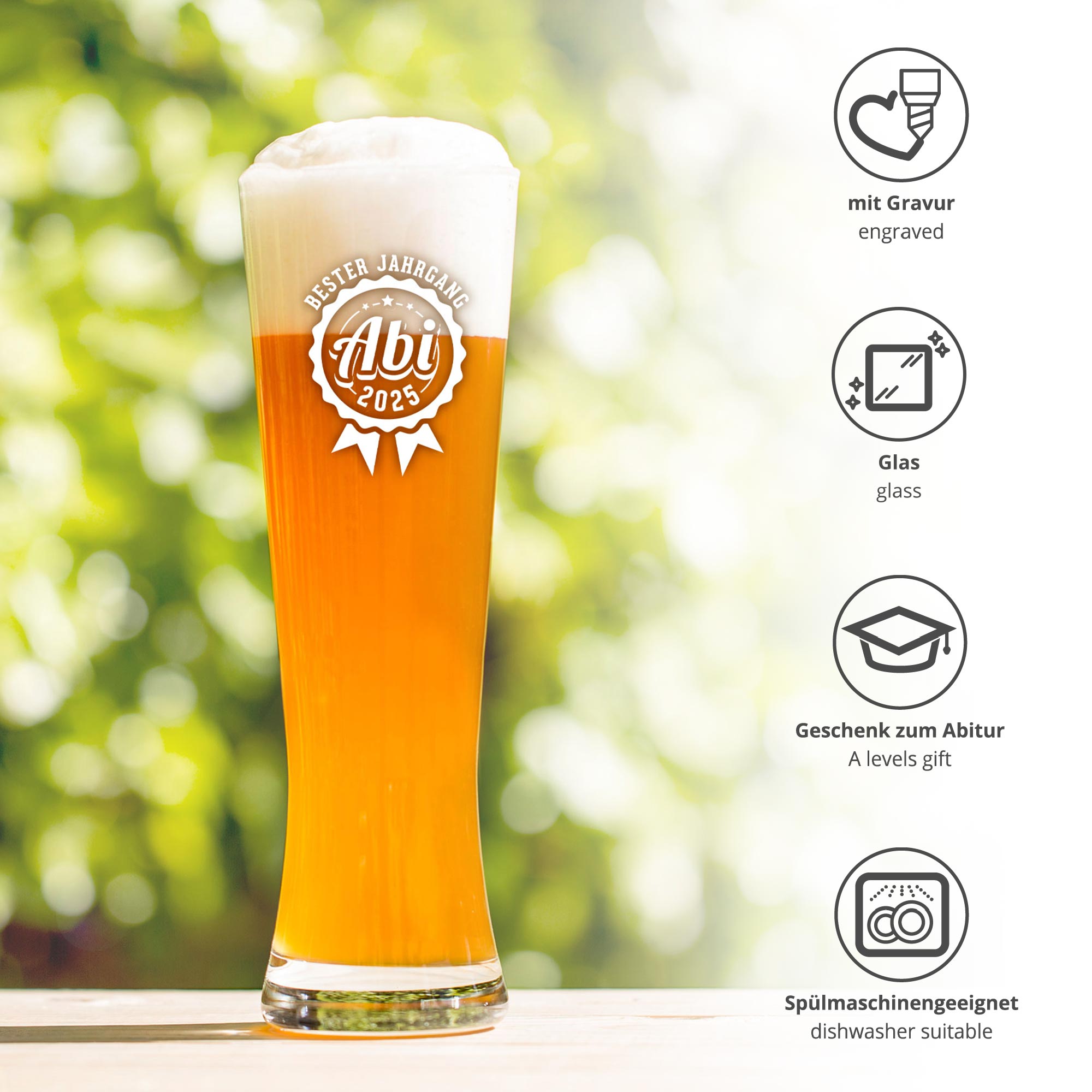 Auf das Abitur kann man schonmal anstoßen. Noch besser geht das selbstverständlich mit einem edlen Glas. Für alle Abiturienten und Abiturientinnen die gerne einmal ein kühles Weizenbier trinken, gibt es unser Weizenbierglas mit Gravur als schickes Abiturgeschenk.